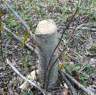 Boya Lake is an incredible turquoise colour, and we take the couple of trails going around the perimeter, arriving right at the far side of the lake to find a huge beaver's lodge and dam. We notice that there are a lots of recently felled smaller trees - and realised that these have been cut by the beavers - there are very clear teeth marks and gnawing pattern.